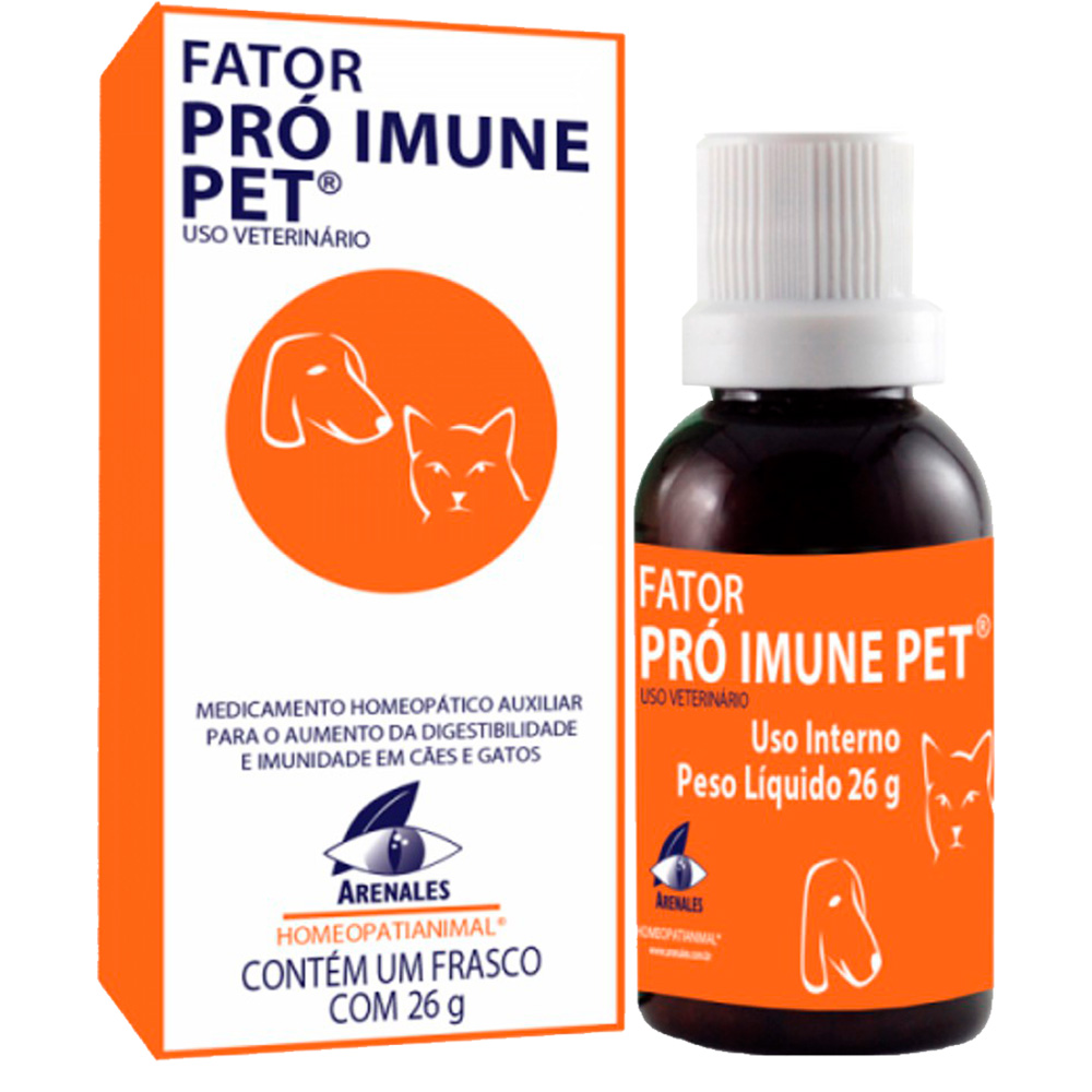 Fator Pró Imune Pet® é indicado como medicamento homeopático auxiliar para o aumento da digestibilidade e imunidade em cães e gatos.