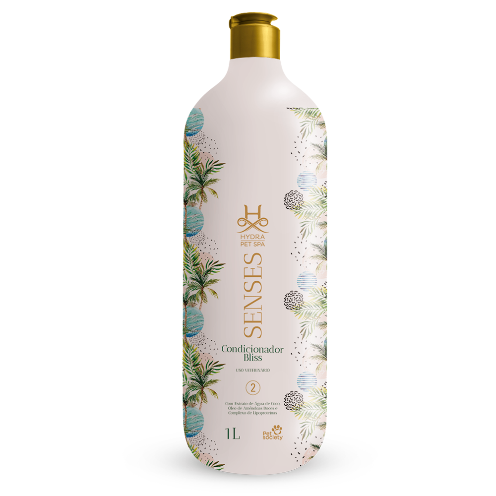 Transforme o banho do seu pet em um spa com o HYDRA Senses Bliss Condicionador! Formulação premium que combina o poder hidratante do Extrato de Água de Coco com a nutrição do Óleo de Amêndoas Doces (rico em Ômega 9), garantindo pelagem macia, brilhante, elástica e irresistível ao toque.