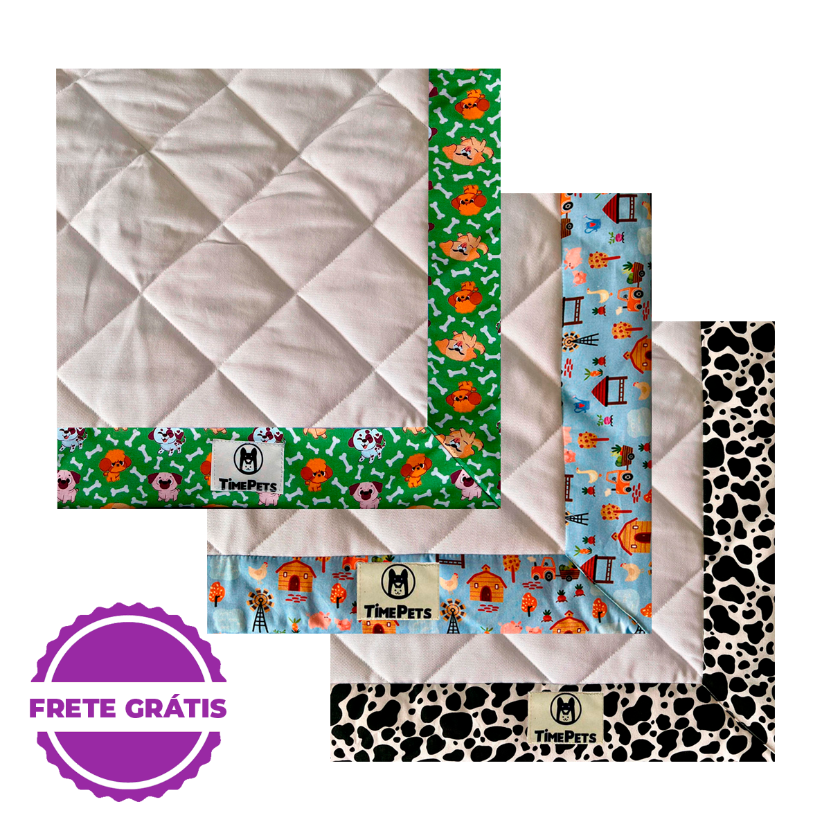 Kit 3 un Tapete Higiênico Lavável 100% Algodão | Doguinhos I