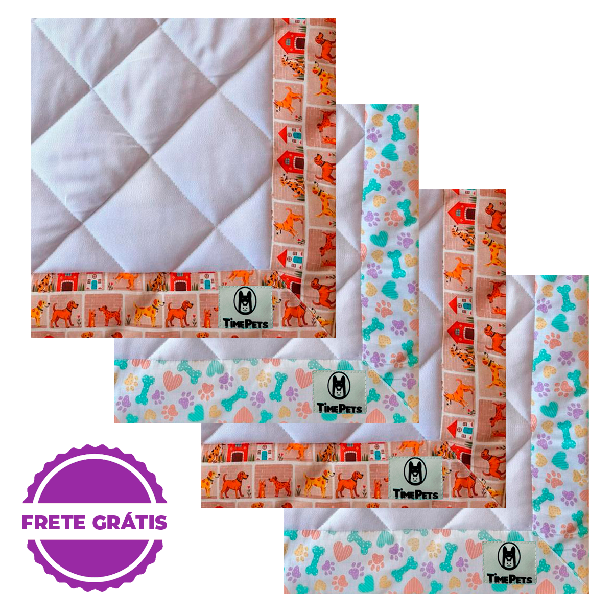 Kit 4 un Tapete Higiênico Lavável 100% Algodão | Doguinhos